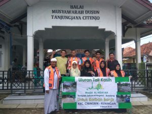Alhamdulillah, pada tanggal 4 Maret 2018 yang lalu, DKM Masjid Al Hidayah dan Tim Beberes Masjid (didukung oleh Bank Syariah Mandiri dan HRV Devotee Indonesia), telah menyampaikan sumbangan Jamaah Masjid Al Hidayah Setiabudi Regensi kepada korban bencana banjir di Kecamatan Cibingbin, Kuningan. Kegiatan ini awalnya diinisiasi oleh Tim Beberes Masjid dan mendapat dukungan sepenuhnya dari DKM Al Hidayah. Pada kesempatan ini, DKM Al Hidayah menyalurkan sebagian dana zakat maal yang dititipkan oleh para Jamaah untuk membantu saudara-saudara kita yang sedang ditimpa musibah.